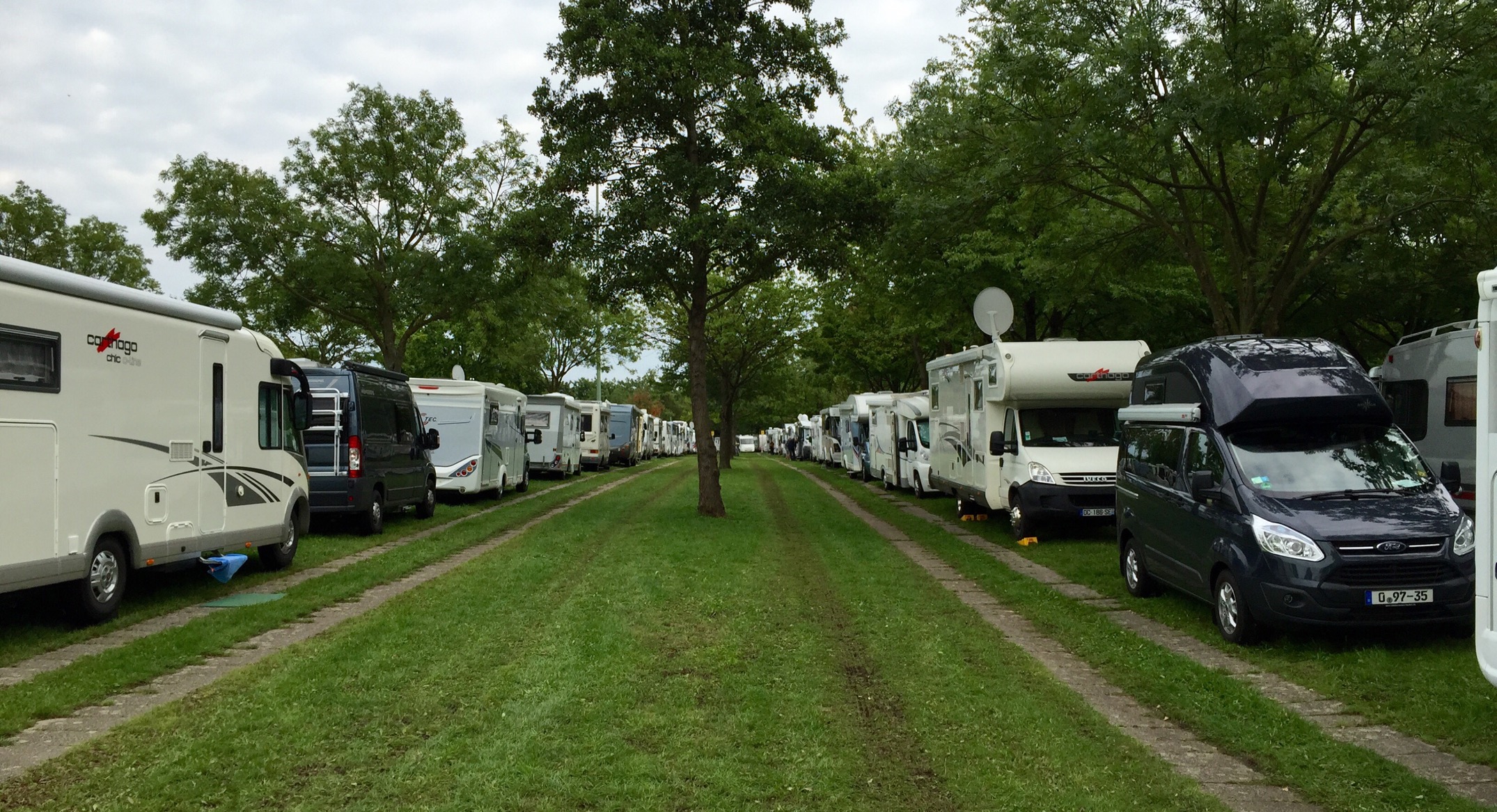 Het lijkt wel of er steeds meer mensen met de camper naar de beurs komen. Onafzienbare rijen witte dozen, met af en toe wat kleur ertussen.