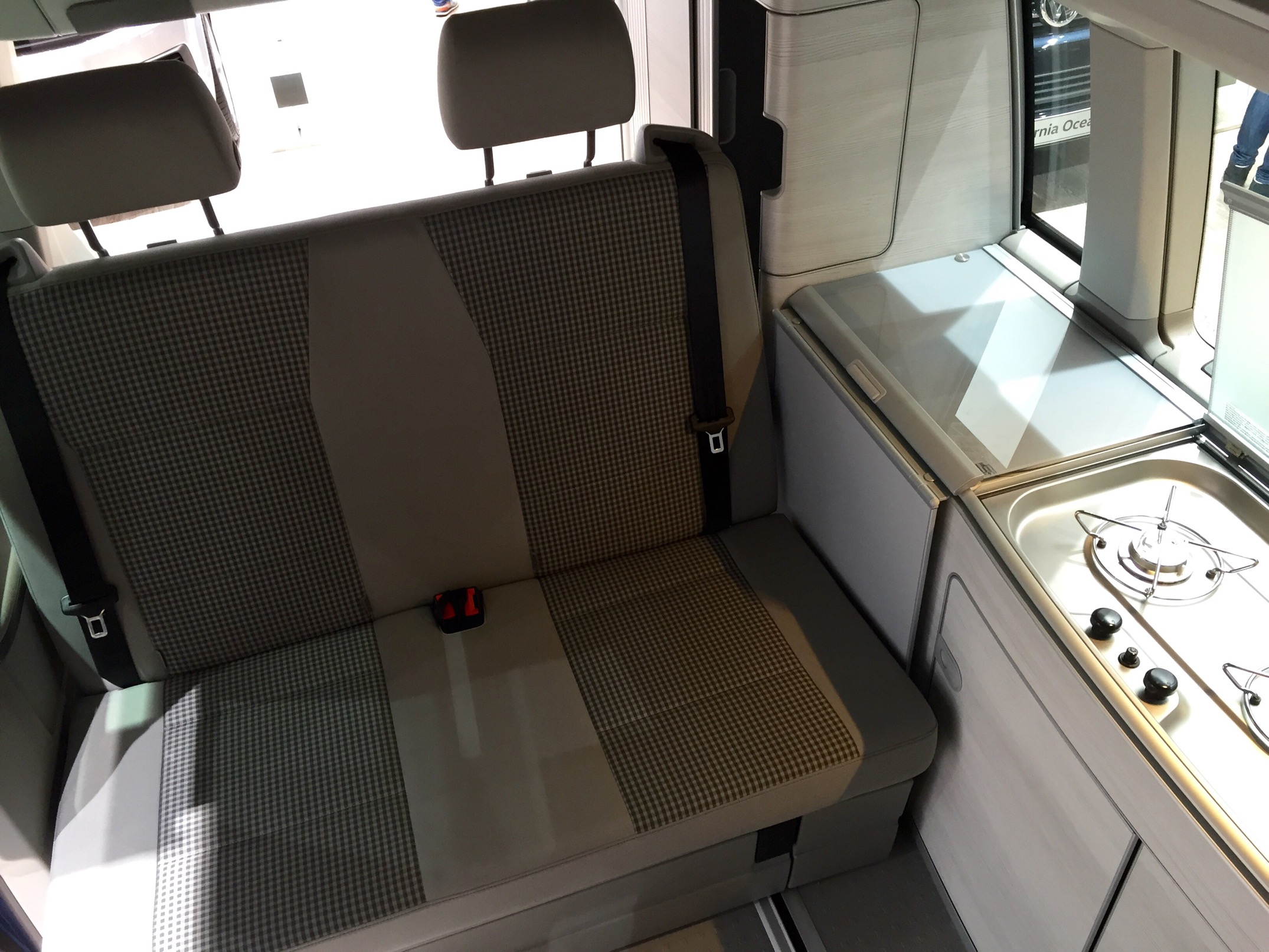 Voor de California pleitten de compacte afmetingen, het rijcomfort en de strakke vormgeving. Maar we hadden we al eens een weekend een T5 gehuurd, en die vonden we met 2 kleine kinderen (toen een baby en een 3-jarige) wel erg krap, ook door de twee kinderzitjes die je bij het kamperen ergens kwijt moet. Bovendien vonden we de indeling, met het kooktoestel naast de zitbank, niet zo veilig met twee rondklauterende peuters aan boord.