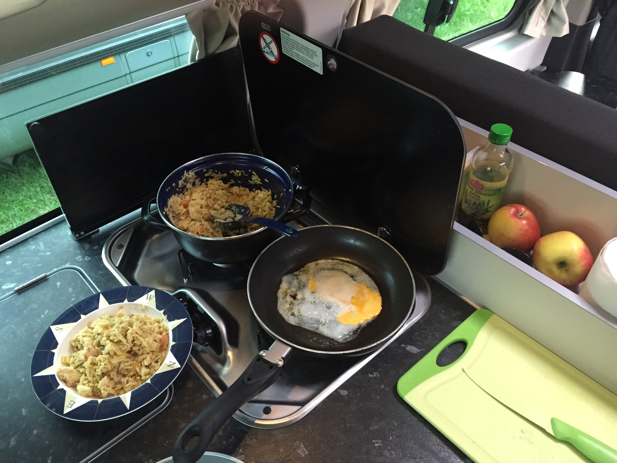 Na m’n korte eerste beursindruk kon ik weer terug naar m’n eigen Westy op P1. Wat heeft zo’n Nugget toch een fijne keuken – nasi goreng is geen enkel probleem (zeker als je hem diepgevroren van huis meeneemt en alleen nog maar hoeft op te warmen, ssst).